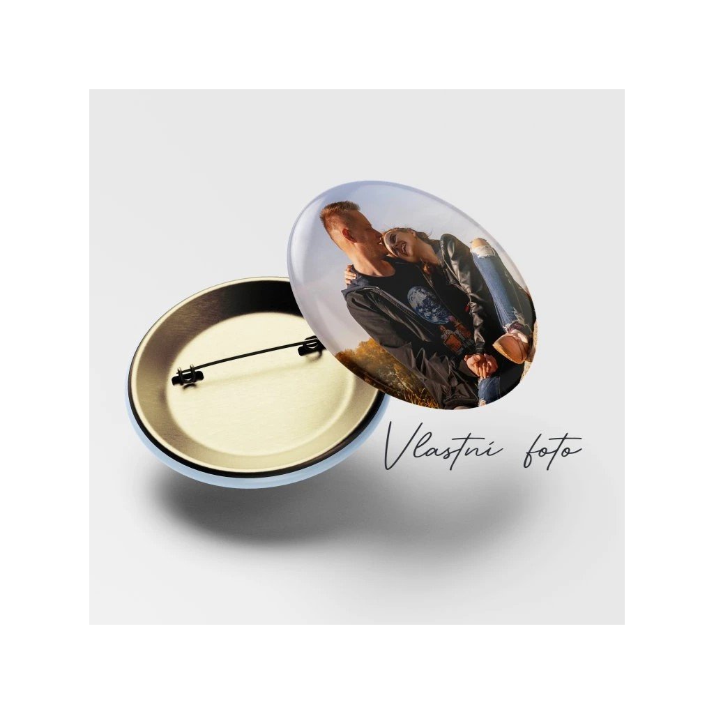 Placka se špendlíkem a vlastní fotkou ve velikosti 44mm.