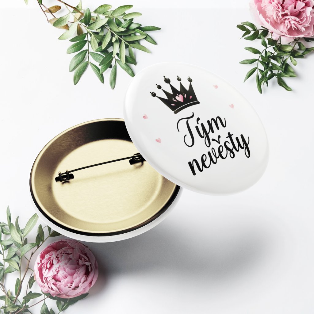 Placka ve velikosti 44mm, ve dvou variantách (tým nevěsty, nevěsta). Určené na rozlučku se svobodou.